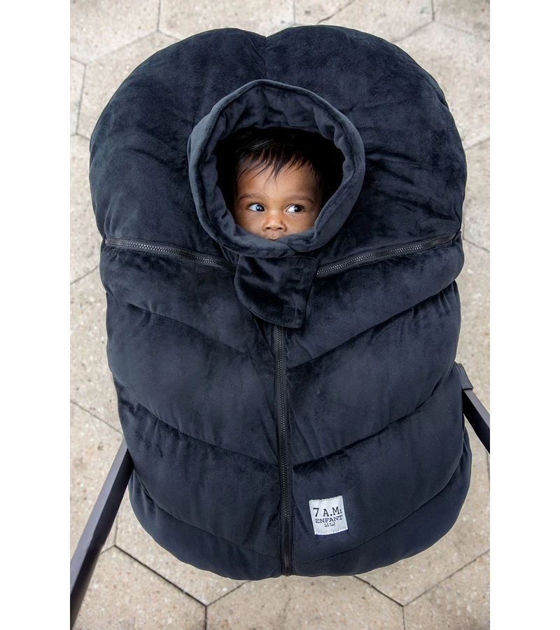 7 A.M. Enfant Cocoon Car Seat Cover – Black Velour