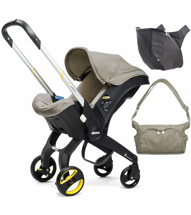 The Doona car seat converts from an infant car seat into a compact stroller! Ideal for nipping out and about with baby, it means there is no need for a stroller or car seat carrier in the trunk of the car. Combining the highest standard in safety and a revolutionary integrated travel system, the Doona has won multiple industry awards. Perfect for today’s busy parent, the Doona surpasses every safety standard both in its primary function as a car seat and when converted – with just a click of a button – into a stroller. With a deep double walled side impact protection, orthopedic inner cushion, and anti-rebound technology, the Doona is also larger than most of its peers, meaning that your infant can remain in the safest form of car seat longer. The Doona can be easily secured using a 3-point seat belt, or with a base (included). The Doona’s integrated wheels mean that in less than ten seconds you can be out of your car with your little one and on your way in safety and style. Whether you’re running errands, picking up a latte, or traveling through an airport, the Doona is truly the next generation in parent and child mobility.