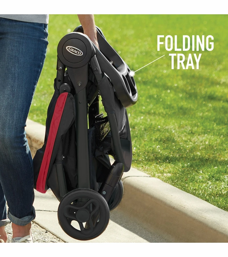 The Graco® FastAction™ SE Travel System features a 25% smaller fold than the current FastAction stroller. The one-second, one-hand fold makes transporting the stroller at a moment’s notice eaiser than ever, keeping your other hand free for everything else. The stroller features a removable child’s tray with cup holders, an extra-large storage basket, and a parent’s tray with two deep cup holders. It’s also self-standing when folded. Plus, the FastAction travel system includes the SnugRide® Click Connect™ 30 LX infant car seat, one of America’s best-selling car seats. The FastAction™ SE Travel System is perfect for every adventure with your little one.
