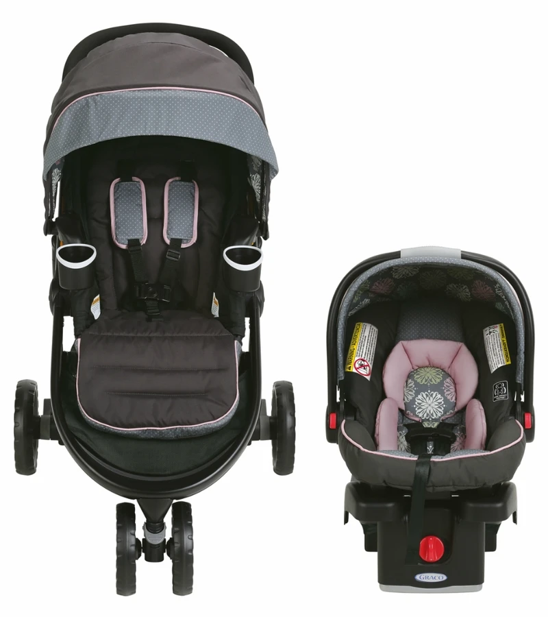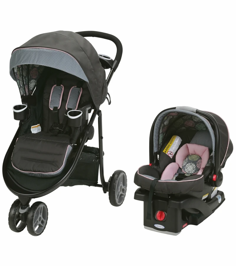 The Graco Modes 3 Lite Travel System stroller gives you 5 ways to ride on a sporty 3-wheel frame, signature FastAction fold and the SnugRide 35 infant car seat. Five ways to ride includes infant car seat on frame facing parent or the world, stroller seat on frame facing parent or the world, or traditional travel system. Innovative fold design lets you fold 2 ways to store the stroller with or without the toddler seat. This car seat stroller combo features a lightweight, sturdy frame making it convenient to take on-the-go and makes quick, and long, trips with baby easier!