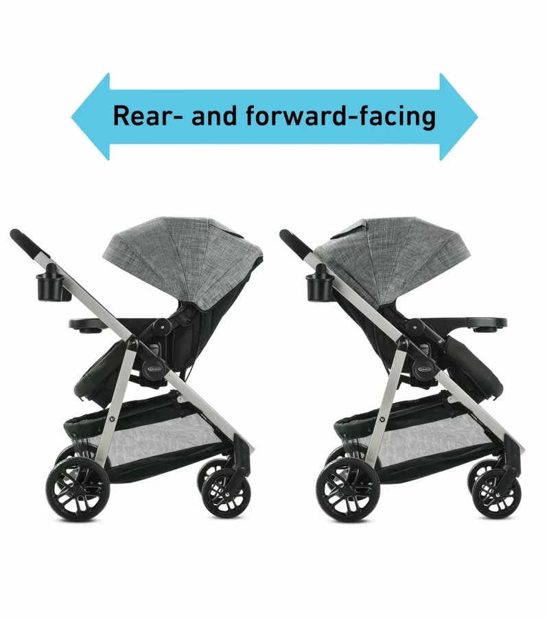 - Reversible stroller seat can face parent or the world, for just the right ride as baby grows