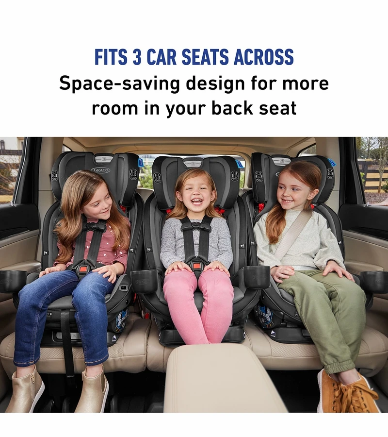- Fits 3 car seats across the back seat with select other Graco car seats
