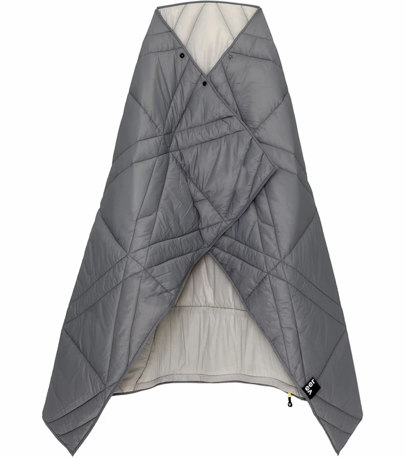 When your adventure is chilly, wrap-up in this cozy quilted puffy blanket. Light-weight, wind-proof, water-resistant and warm it is constructed of 100% 20D performance nylon wrapped around down-alternative insulation. Snaps and hand pockets make for an easy wrap that stays put. Stuff in built in zipper pocket for a pillow.
